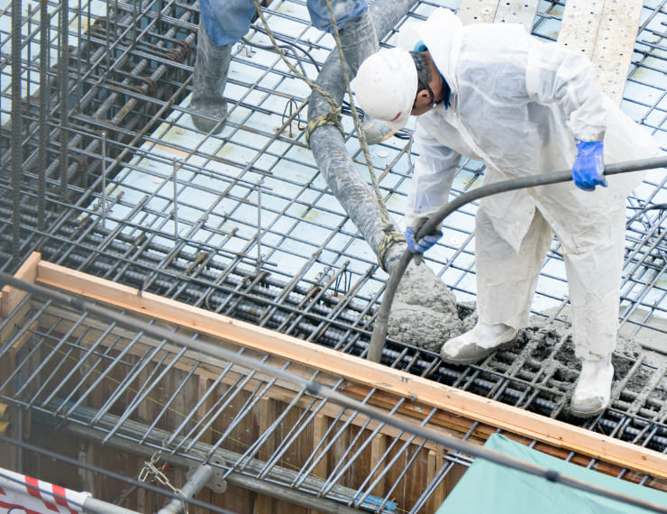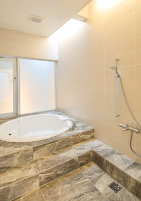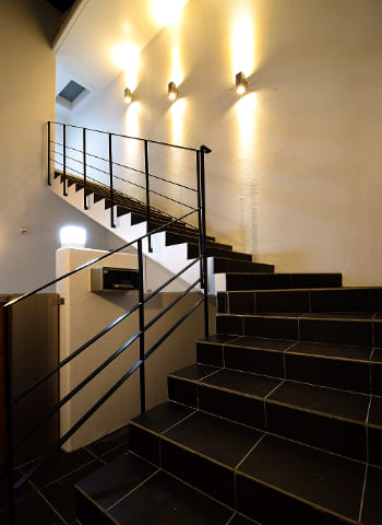 擁壁 (ようへき) を必要とする場合において、建物と一体型で造りあげることができたり、どんな土地の形状でも住宅建築ができます。