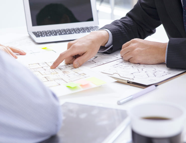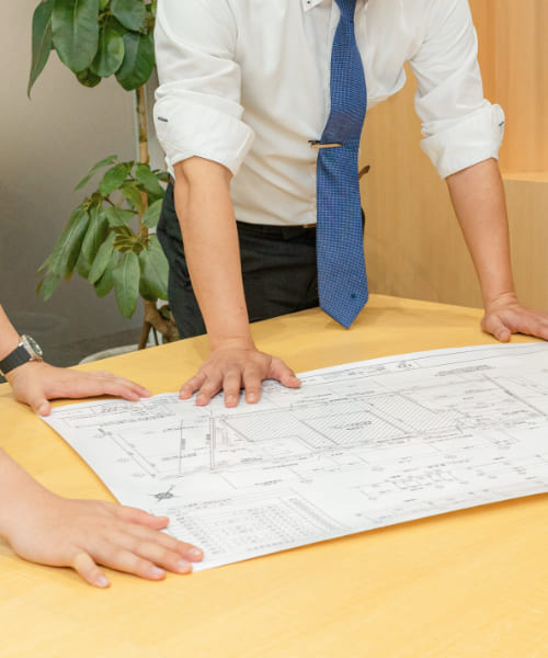 例えば「この土地で吹き抜けのリビングをつくると日差しがうまく入らない」「隣の敷地との間にゆとりがあって見晴らしの良いバルコニーがつくれそう」など、具体的なイメージをもちながら設計士がアドバイスを致します。
