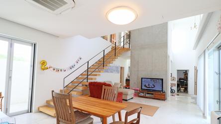 外人住宅のようなコンクリートの素材を生かした、 開放的で広々とした家