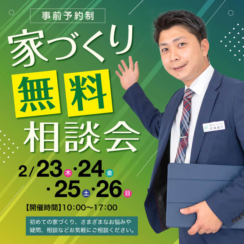 【2/23(木・祝)・24(金)・25(土)・26(日)】家づくり無料相談会開催🏠