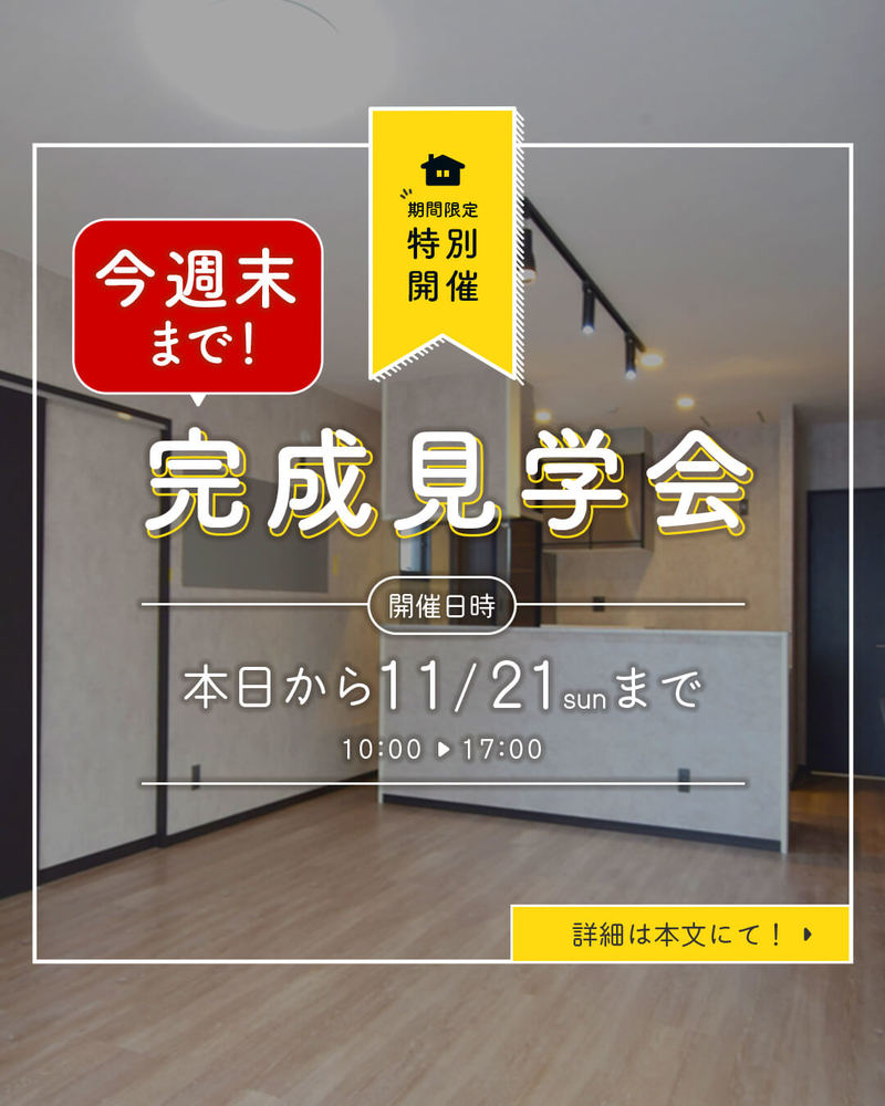 今週末まで!ご好評につき見学会を延長致します!【本日から11/21(日)まで】沖縄市泡瀬 完成見学会を開催します☆