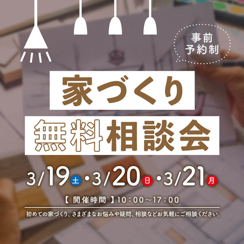 【3/19(土)・3/20(日)・3/21(月)】家づくり無料相談会開催♪