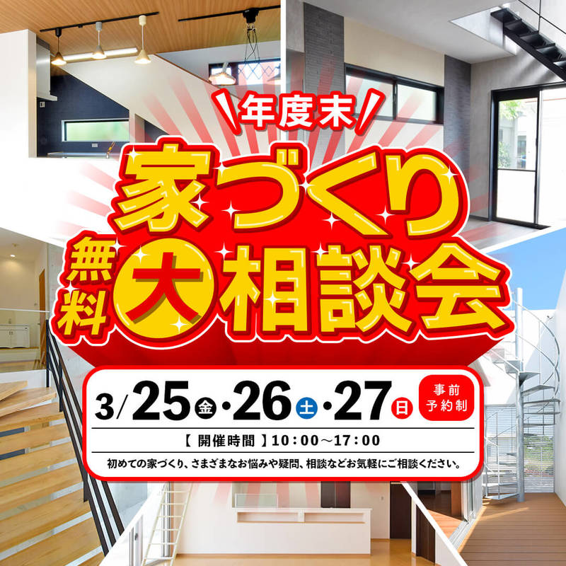 【3/25(金)・3/26(土)・3/27(日)】年度末!家づくり無料大相談会開催♪