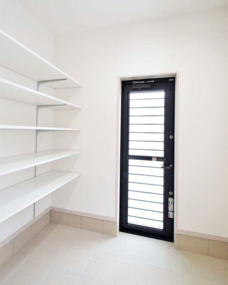 収納側には駐車場へと抜ける勝手口も付いていて、
