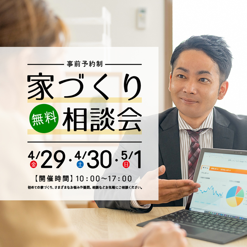 【4/29(金)・4/30(土)・5/1(日)】家づくり無料相談会開催♪